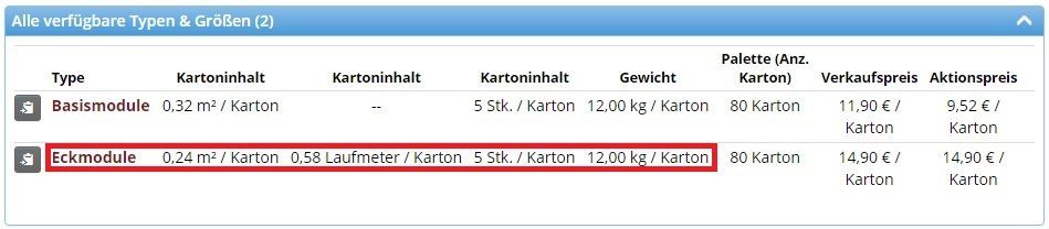 Auch die Eckmodule verdecken eine gewisse m2-Fläche und können somit nicht nur in vertikalen Laufmetern berechnet werden - unsere Website umfasst jedoch alle Informationen diesbezüglich.